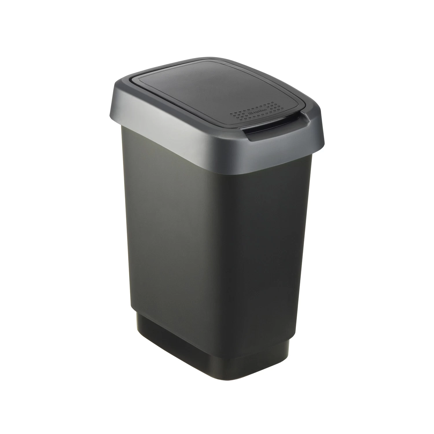 Voor kleine hoeveelheden afval is deze Rotho Twist afvalbak de perfecte keuze! Met een inhoud van 10 liter en een stijlvol design misstaat deze prullenbak nergens. Het deksel kan op twee manieren bediend worden: als swing-deksel of als lift-deksel, en kan verwijderd worden zodat de zak makkelijk weg te gooien is, en de prullenbak makkelijk schoongemaakt kan worden!
