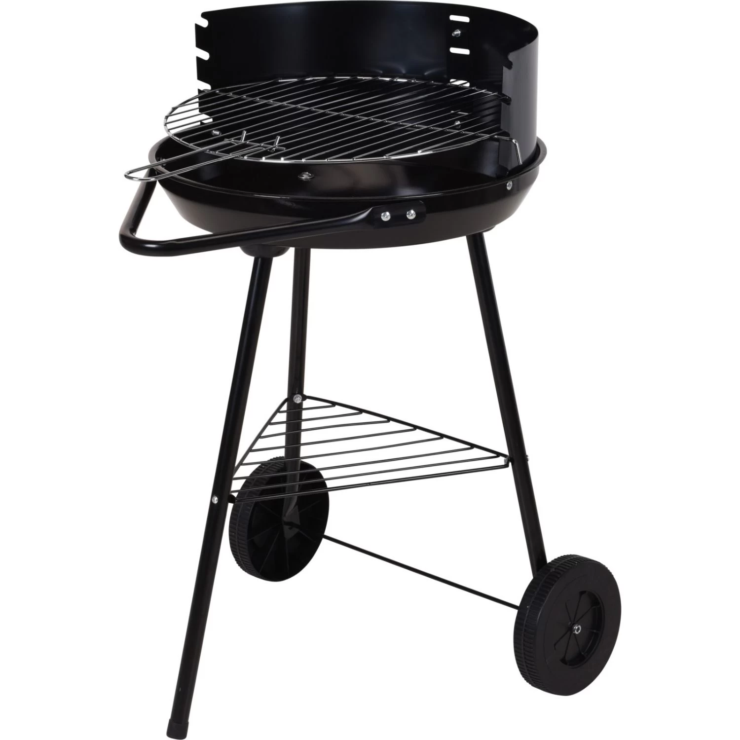 Heerlijk genieten in je eigen tuin met deze half open zwarte BBQ barbecue op wielen. Dit is een Houtskoolgrill met windscherm op 3 pootjes. Hij is verstelbaar in hoogte en is gemaakt van zwart geëmailleerde vuurschaal, grillrooster verchroomd, windscherm elektrisch gecoat.