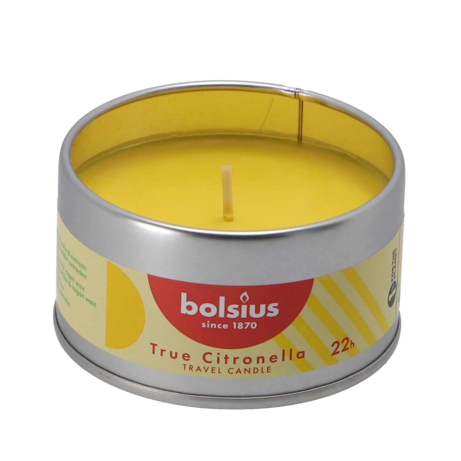 Breng extra veel sfeer in huis met het Bolsius True Citronella geurkaars! Dit is een geurkaars in een blikje, waarmee de kaars luchtdicht afgesloten kan worden zodat er geen geur meer vrij komt. De citronella geurkaars brengt de welbekende bij jou in huis en tuin! De kaars biedt ca. 22 branduren, dus daar kun jij urenlang van genieten!