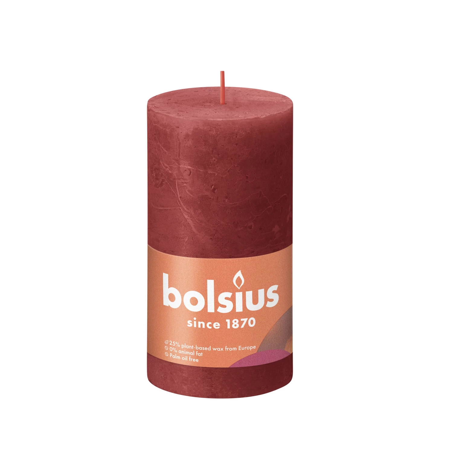 Bolsius weet hoe jij sfeer in huis haalt! Hun kaarsen brengen al meer dan een eeuw sfeer in huizen door heel Europa. Deze rustieke Bolsius stompkaars in de kleur rood is 13 cm hoog, met een diameter van 6,8 cm. Daarmee heeft hij tot wel 60 branduren! Deze kaars kan bovendien op elk moment gebruikt worden: ’s avonds op de bank, buiten in de tuin, of tijdens het diner!