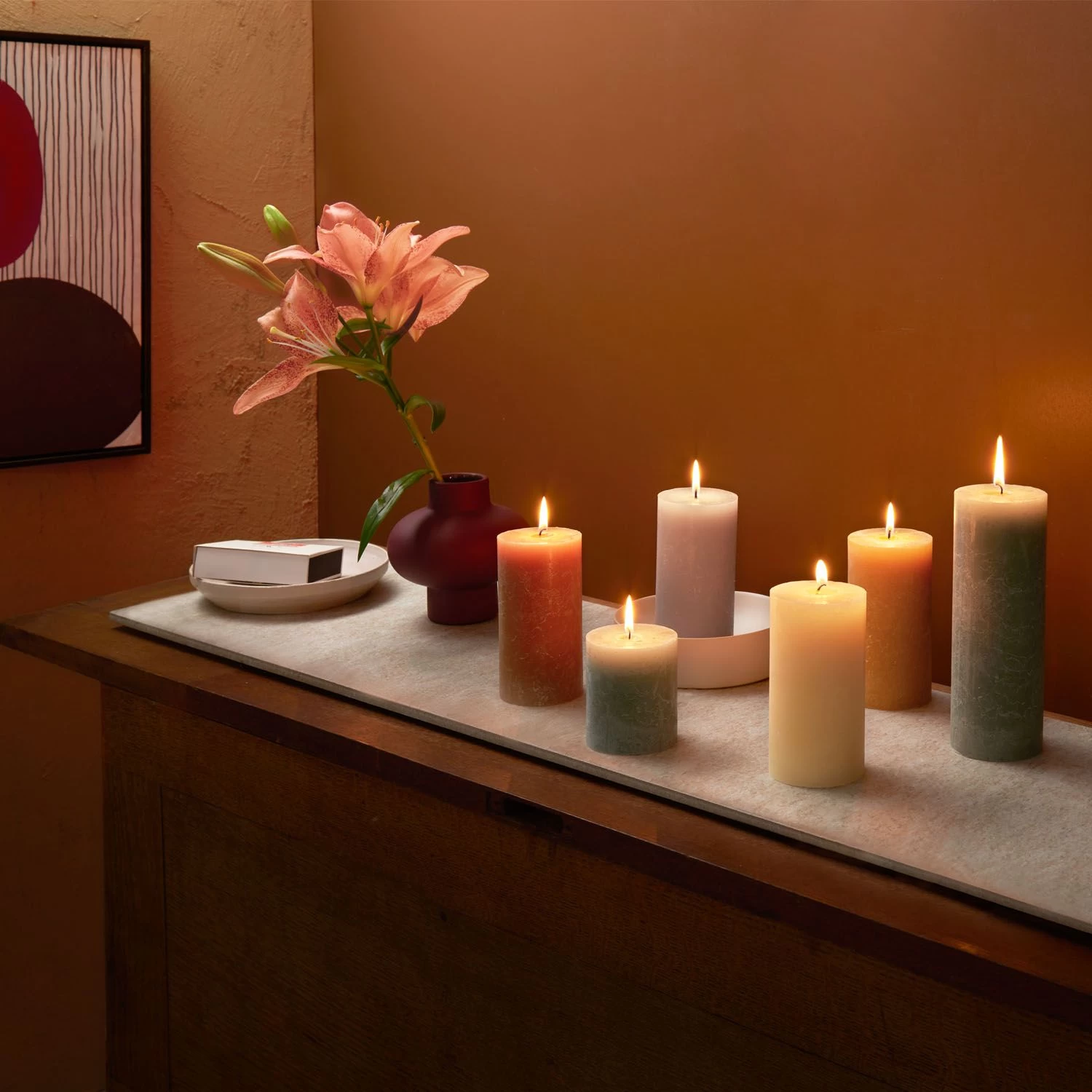 Bolsius weet hoe jij sfeer in huis haalt! Hun kaarsen brengen al meer dan een eeuw sfeer in huizen door heel Europa. Deze rustieke Bolsius stompkaars in de kleur taupe is 13 cm hoog, met een diameter van 6,8 cm. Daarmee heeft hij tot wel 60 branduren! Deze kaars kan bovendien op elk moment gebruikt worden: ’s avonds op de bank, buiten in de tuin, of tijdens het diner!