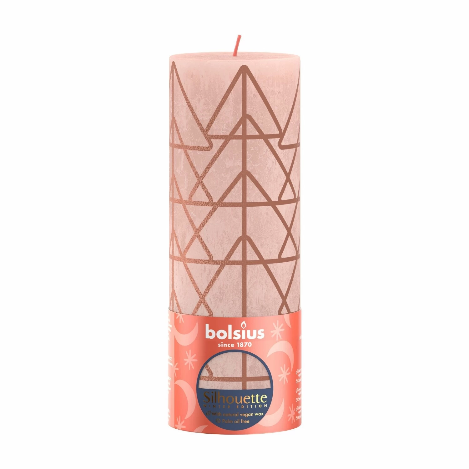 Deze klassieke rustieke Bolsius kaars in de kleur Misty Pink heeft een afmeting van 19 x 6,8 cm. De kaars met grafische print zorgt voor een gezellige en warme sfeer in de woonkamer tijdens een avondje bankhangen of een ontspannende sfeer in de badkamer tijdens het badderen. De kaars brand na ca. 65 uren op en roet niet. Combineer de kaars met andere kleuren of formaten van kaarsen en plaats ze op een plateau voor een mooi effect.