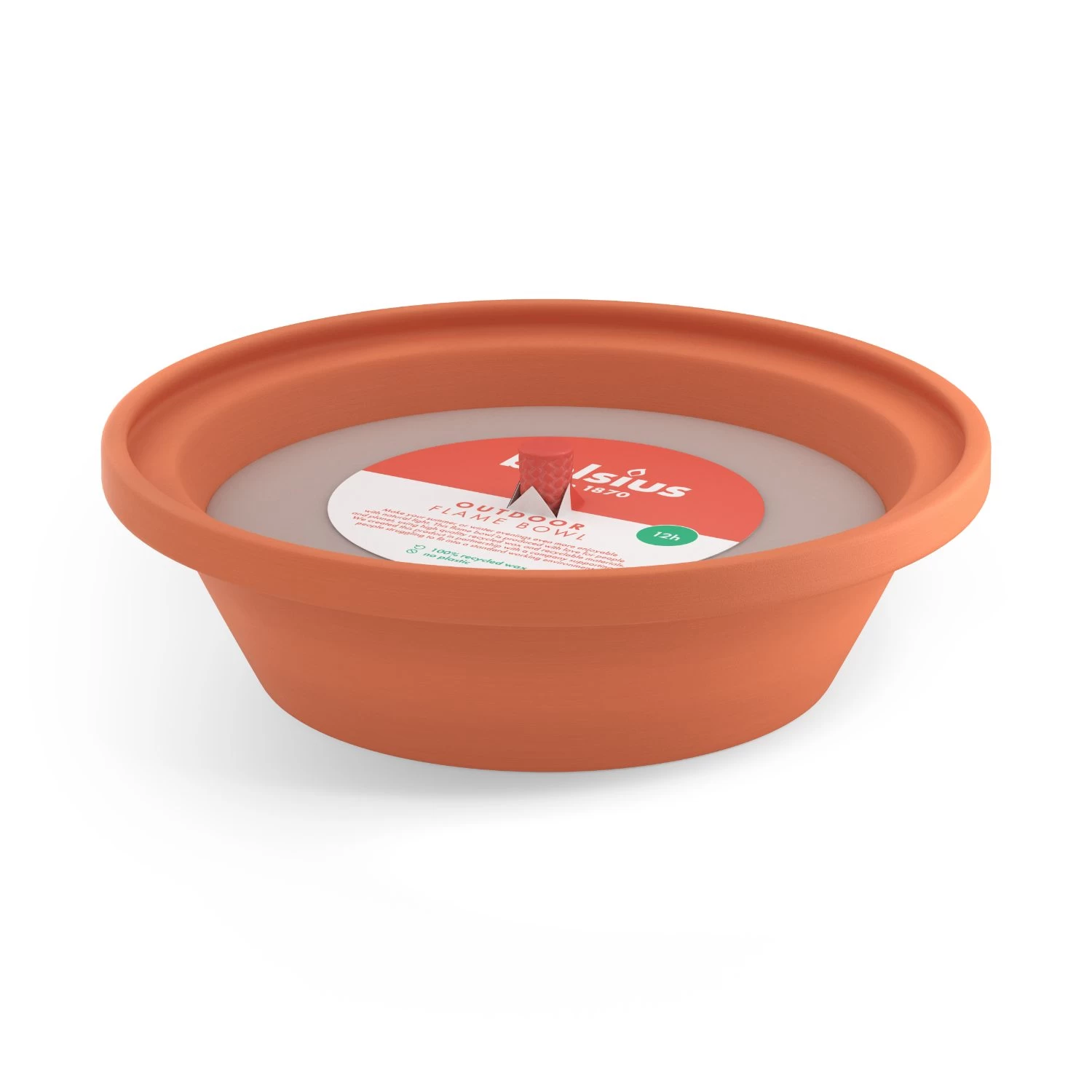 Geniet van een fijne sfeerverlichting op tafel of op het gazon met deze Bolsius terracotta vlamschaal. De vlamschaal heeft een afmeting van 23 x 6 cm en de kaars heeft 12 branduren.