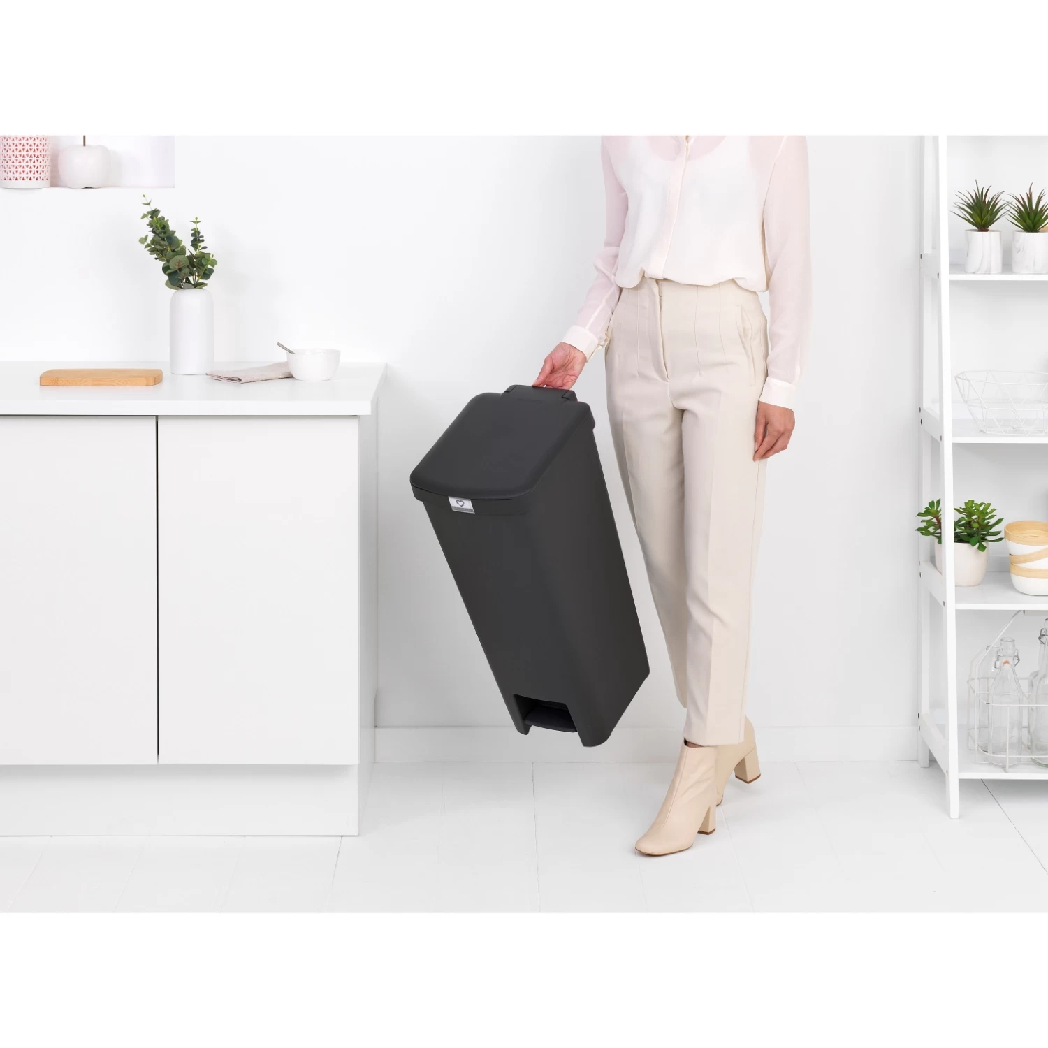 Zet de volgende stap in recycling met de Brabantia StepUp pedaalemmer 40L! Gemaakt van 91% gerecycled materiaal en voor recyclen. Met een click-on labelhouder voor je eigen labels en handige opbergruimte voor afvalzakken in de prullenbak. Als je van recyclen houdt, is dit de pedaalemmer voor jou!