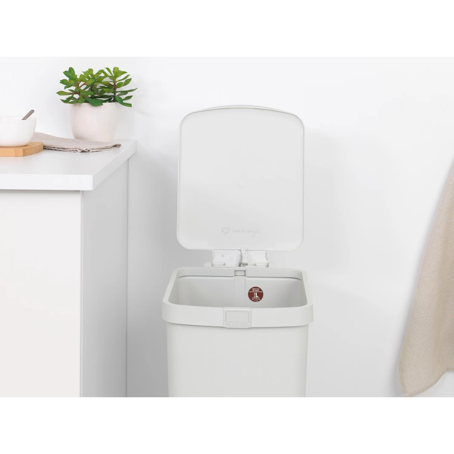- Zak uit beeld – bijpassende Brabantia PerfectFit afvalzakken met trekbandsluiting verkrijgbaar (maat L).