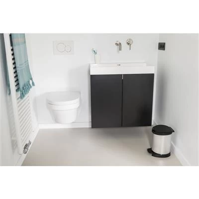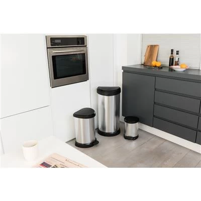 Druk met je voet op het pedaaltje en deponeer je afval in deze Decobin pedaalemmer. De pedaalemmer is gemaakt van kunstof maar heeft een matte afwerking en lijkt op metaal. In de pedaalemmer past een inhoud van 20 liter. Hij is 45 cm hoog en geschikt voor in kleinere ruimtes zoals badkamer of toilet.