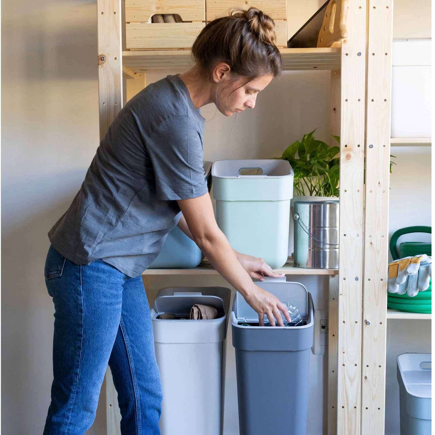 Wil je wat ruimte besparen op de vloer? Alle maten kunnen op elkaar gestapeld worden, met een handige toegang tot de voorkant van de 20L & 30L door middel van een ‘split-lid’. Ze kunnen zelfs worden opgehangen aan de muur of in een kastje dankzij de bijgeleverde muurbeugels. Om de vuilnisbak gemakkelijk op te tillen, te verplaatsen of legen hebben ze een groot handvat aan de achterzijde en een comfortable greep in de bodem maakt ze perfect voor dagelijks gebruik.