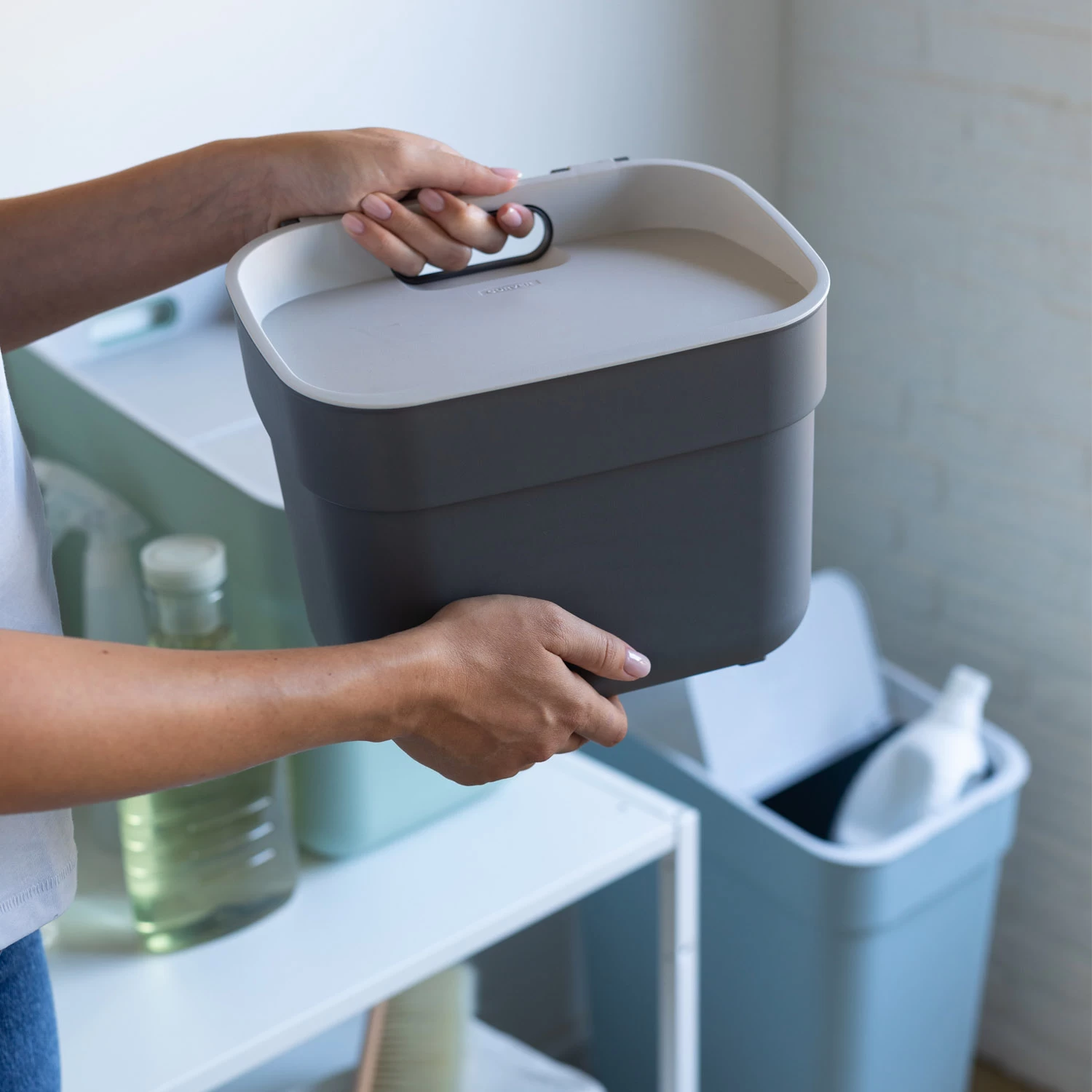 Wil je wat ruimte besparen op de vloer? Alle maten kunnen op elkaar gestapeld worden, met een handige toegang tot de voorkant van de 20L & 30L door middel van een ‘split-lid’. Ze kunnen zelfs worden opgehangen aan de muur of in een kastje dankzij de bijgeleverde muurbeugels. Om de vuilnisbak gemakkelijk op te tillen, te verplaatsen of legen hebben ze een groot handvat aan de achterzijde en een comfortable greep in de bodem maakt ze perfect voor dagelijks gebruik.
