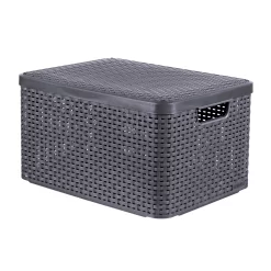 Het Curver Style Mandje 30L L met deksel in antraciet is een elegante en ruime oplossing om je spullen georganiseerd te houden. Dit aantrekkelijke mandje combineert het klassieke uiterlijk van gevlochten rotan met de duurzaamheid en het onderhoudsgemak van kunststof.
