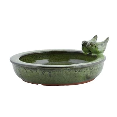 Dit vogelbad van Esschert Design biedt vogels twee keer plezier. Het kommetje verschaft hen een drinkplaats maar is tegelijkertijd een badgelegenheid. Plaats het bad op een goed zichtbare plek. Maak het vogelbad schoon en ververs het water regelmatig. Het vogelbad is gemaakt van keramiek en een assorti van drie kleuren (creme, groen en blauw).