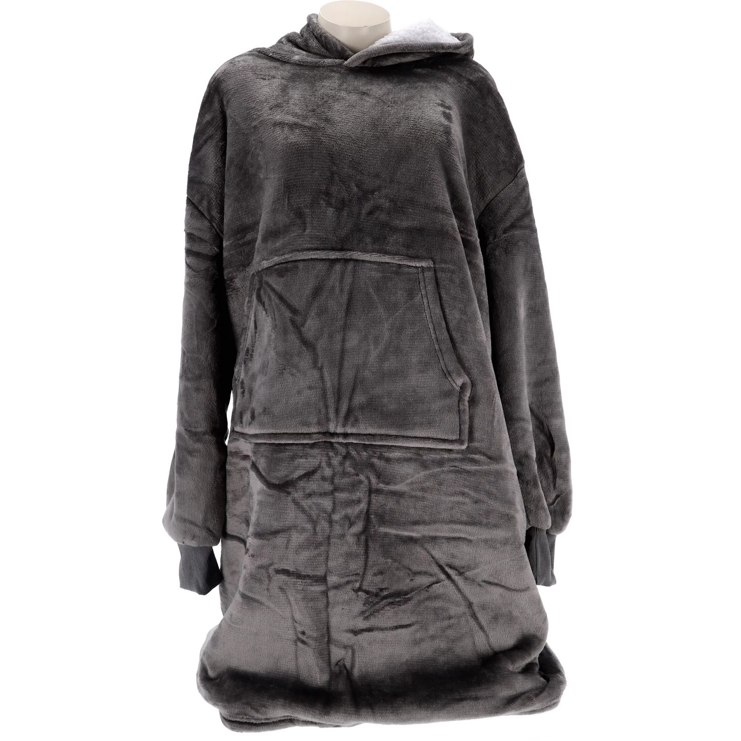 Heb je het altijd koud en ben je daarom op zoek naar een lekkere warme deken? Dan is deze hoodie plaid met mouwen de ideale oplossing. Doordat je deze deken aan kunt trekken als een kledingstuk heb je het overal in huis lekker warm. De plaid heeft ook een handige buidel aan de voorkant. Erg handig om kleine dingen zoals een afstandsbediening in te bewaren! Plaid Sherry is een zachte unikleur plaid met witte teddy stof aan de binnenkant. De plaid in de Charcoal Grey kleur heeft een formaat van 110×170 cm en is gemaakt van 100% polyester. Door het gebruik van flannel fleece voelt hij lekker zacht aan en heb je het gegarandeerd lekker warm.