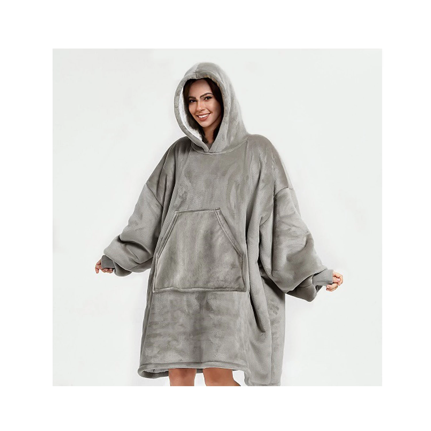 Heb je het altijd koud en ben je daarom op zoek naar een lekkere warme deken? Dan is deze hoodie plaid met mouwen de ideale oplossing. Doordat je deze deken aan kunt trekken als een kledingstuk heb je het overal in huis lekker warm. De plaid heeft ook een handige buidel aan de voorkant. Erg handig om kleine dingen zoals een afstandsbediening in te bewaren! Plaid Sherry is een zachte unikleur plaid met witte teddy stof aan de binnenkant. De plaid in de Pantone kleur Pumice Stone heeft een formaat van 110×170 cm en is gemaakt van 100% polyester. Door het gebruik van flannel fleece voelt hij lekker zacht aan en heb je het gegarandeerd lekker warm.