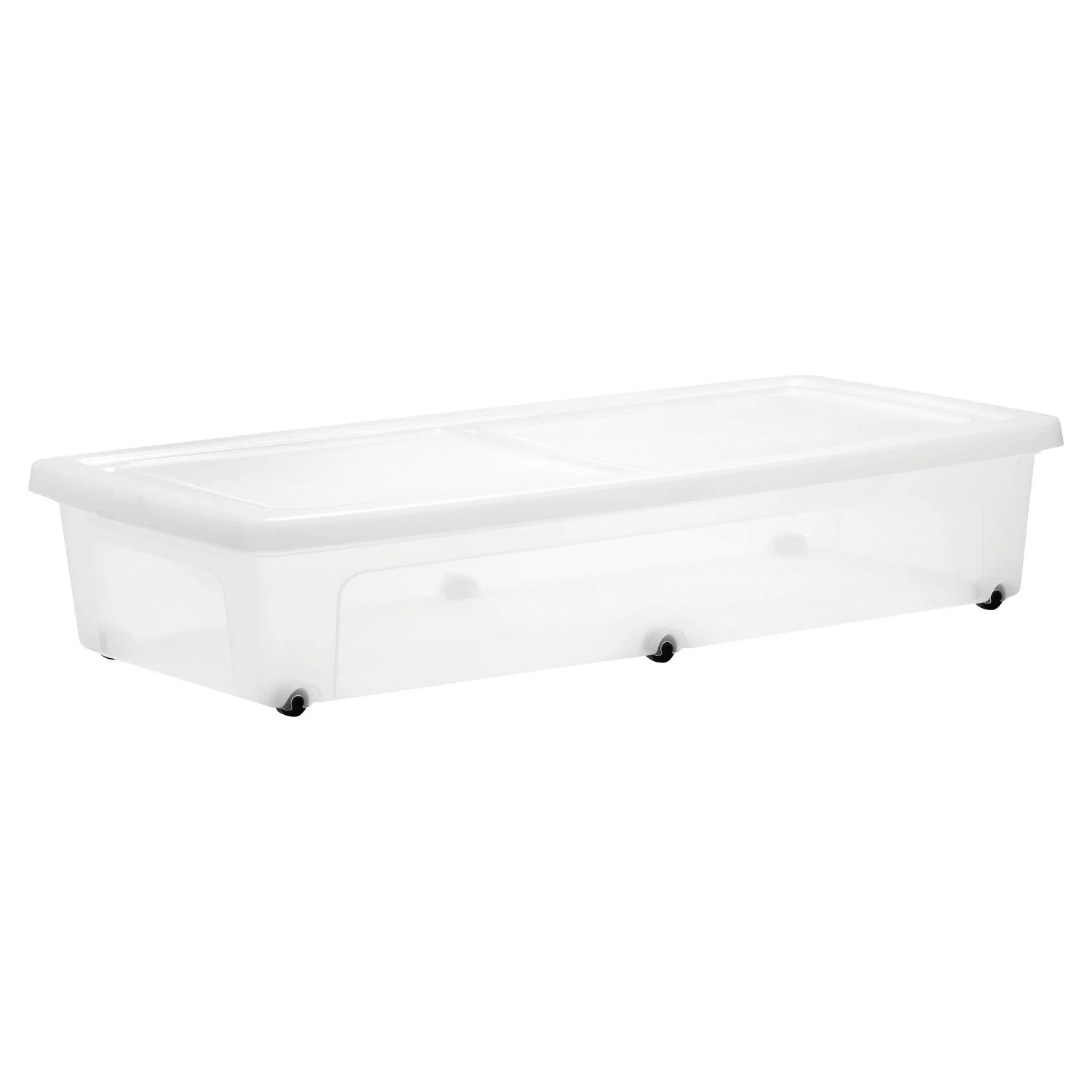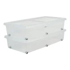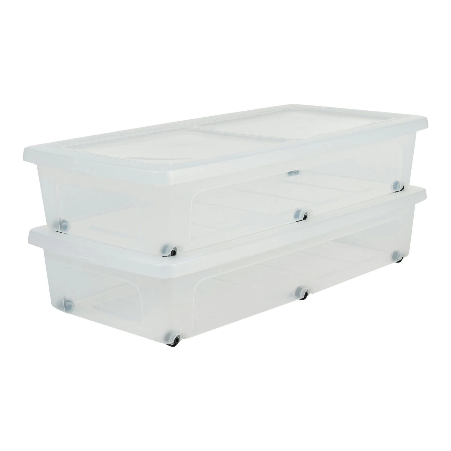 IRIS Modular Clear Box Under Bed is een ideale transparante box om spullen onder je bed te bewaren, zodat er geen stof of vuil bij komt. De boxen komen in een set van 2 en hebben een inhoud van 35 liter. Door de wieltjes is de nestbare box van 800 mm lang, 400 mm breed en 160 mm hoog ook makkelijk onder je bed te rollen. Goed om te weten: de IRIS Modular Clear Box Under Bed wordt geleverd inclusief deksels.