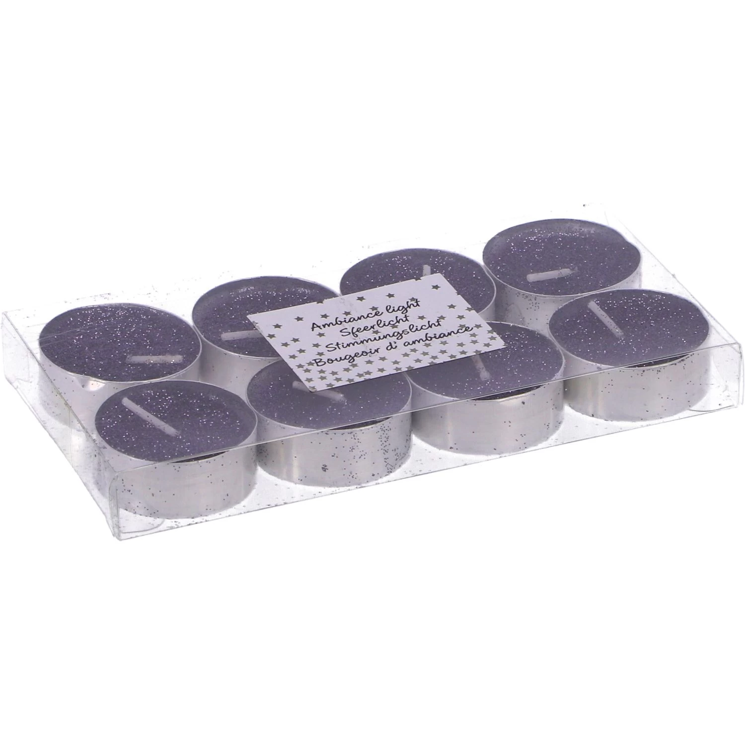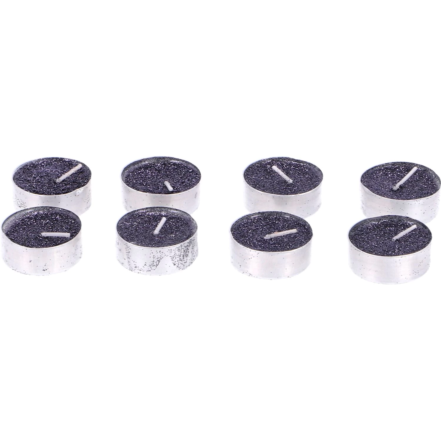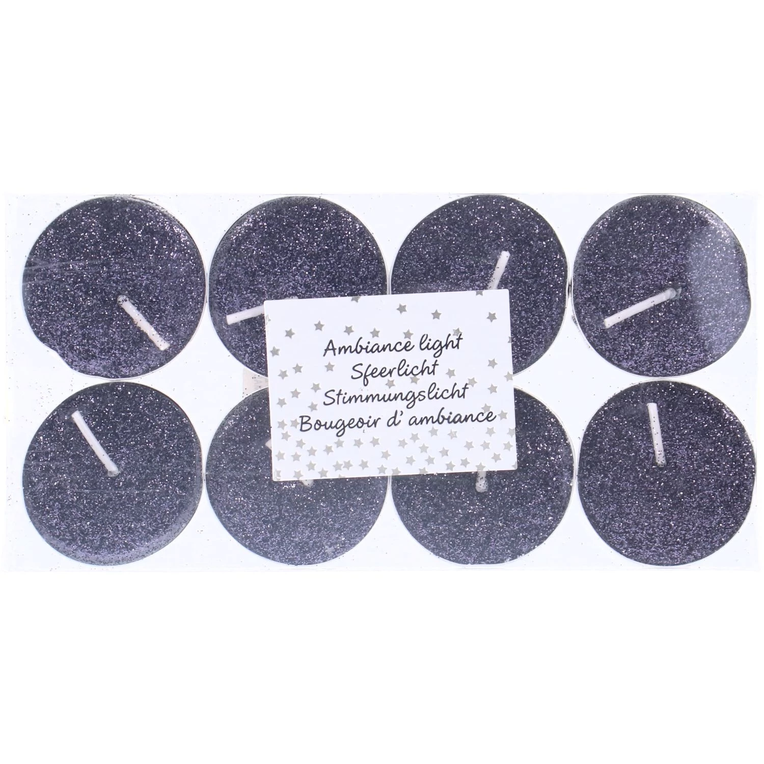 Kaarsen brengen sfeer in huis, en dat geldt al helemaal voor deze kerst theelichten! Deze 8 grijze theelichten hebben glitters, waardoor ze er ook prachtig uitzien als ze niet branden. Ieder theelicht heeft 2 branduren.