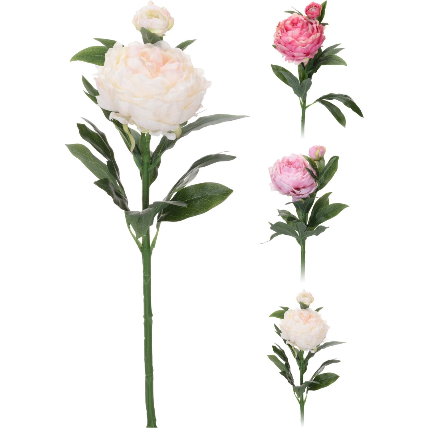 Kunstbloem Pioenroos 17X17X61Cm 3 Assorti Donker Rood Licht Rood Wit