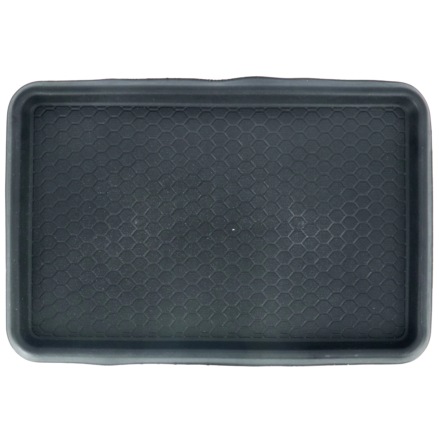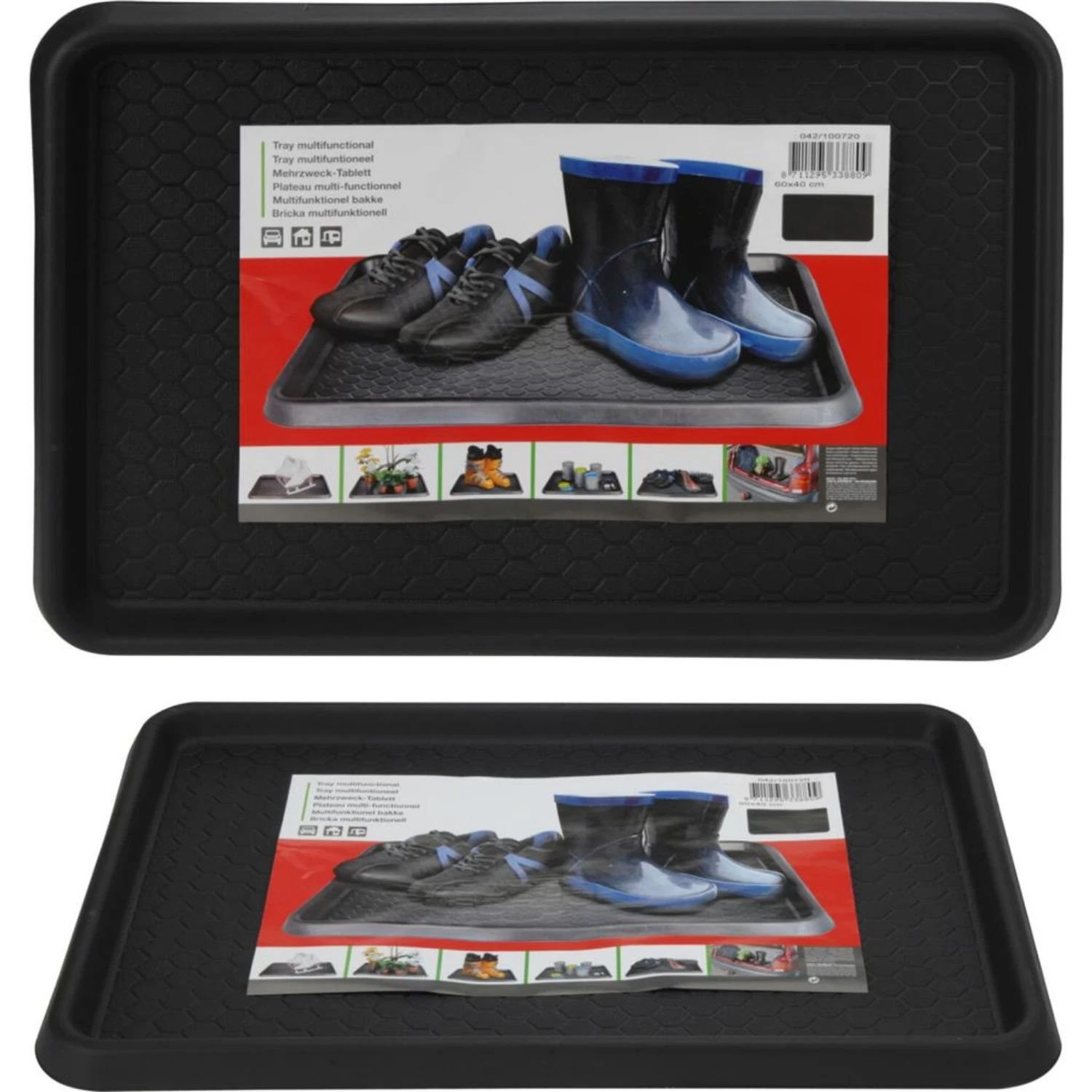 Houd je vloeren schoon en georganiseerd met deze handige laarzentray. Met een kunststof blad van 60×40 cm is deze tray perfect voor het opbergen van vieze schoenen bij de voordeur of als basis voor plantenpotten in de tuin. De zwarte kleur geeft een moderne uitstraling en past goed bij elk interieur. Voorkom dat modder, vuil en water zich verspreiden over de vloer met deze praktische laarzentray.