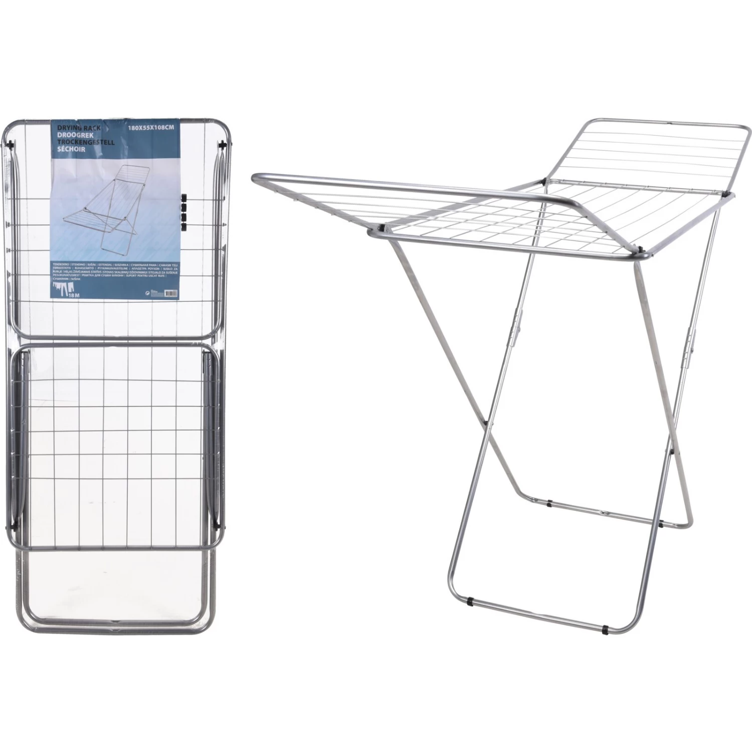 Op zoek naar een simpel maar doeltreffend droogrek om je wasgoed te laten drogen? Dit metalen droogrek is 180x55x108 cm groot, en biedt 18 meter aan hangruimte voor al jouw wasgoed. Eenvoudig op te zetten, en eenvoudig weer in te klappen zodat hij weinig ruimte inneemt als je hem niet gebruikt!