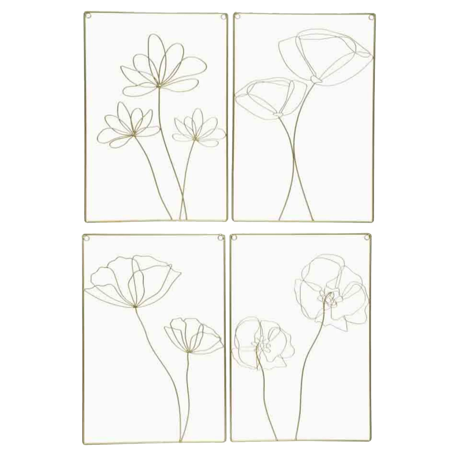 Deze gouden metalen muurhanger verdient een mooie plek binnen aan je muur of buiten aan de schutting. De muurhanger bestaat uit 4 verschillende soorten bloemen in een frame. Het is vooraf niet te bepalen welke versie je ontvangt. Afmeting: 38 x 58 cm.