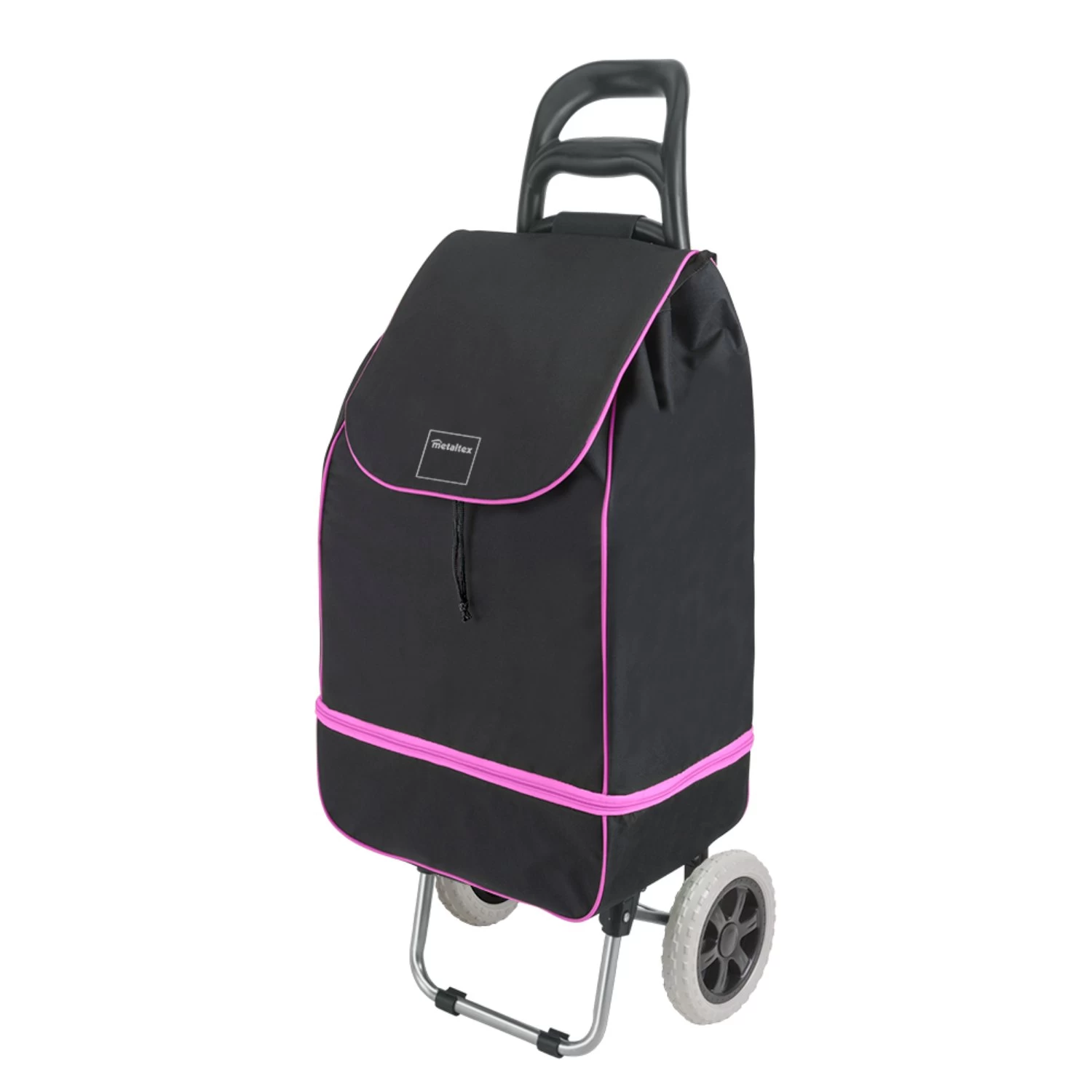 De boodschappentrolley Lily van Metaltex heeft een hoge stabiliteit door zijn grote robuuste wielen. De trolley is voorzien van een comfortabel handvat en heeft een draagvermogen van 45 tot 53 liter. De trolley heeft een rits waardoor je meer ruimte kunt creëeren. Wanneer je boodschappen ingepakt zijn trek je het koord aan en je bent klaar om te gaan!