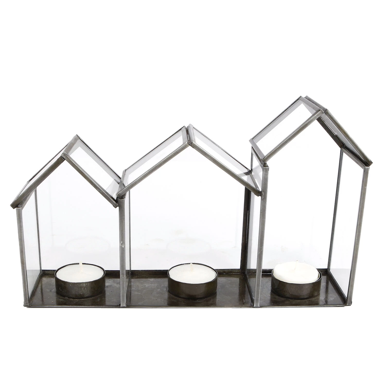 Theelichthouder Houses Helder/zink Metaal26x6,5×16