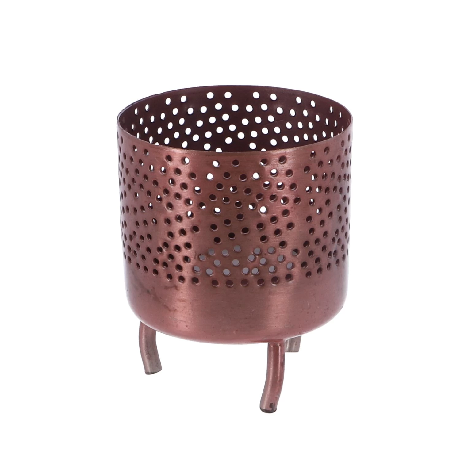 Plaats deze Luca in maat L theelichthouder op je salon- of bijzettafel en doe er een waxinelichtje in. De theelichthouder van staal heeft een koperen kleur en bijzondere pootjes. Daarnaast is de sfeerbrenger geperforeerd aan de bovenkant, dit geeft een mooi lichteffect van de kaars. De theelichthouder is 8 x 8 x 10 cm.
