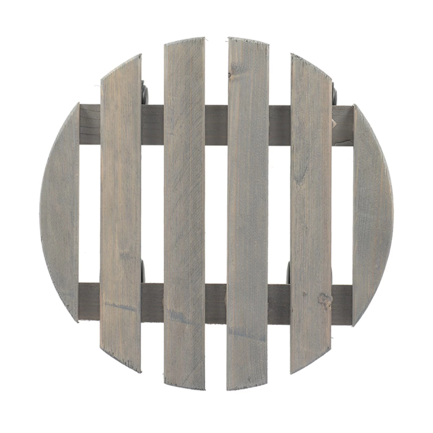 Landelijke houten meubels en accessoires waren jarenlang in en om het leefgedeelte van boerderijen te vinden. Deze ronde plantentrolley van Esschert Design die voorzien is van vier zwenkwielen is ideaal om zware bloempotten of planten te verplaatsen zowel binnen als buiten op het terras. Afmeting: 28,4 x 28,4 x 7,9 cm.