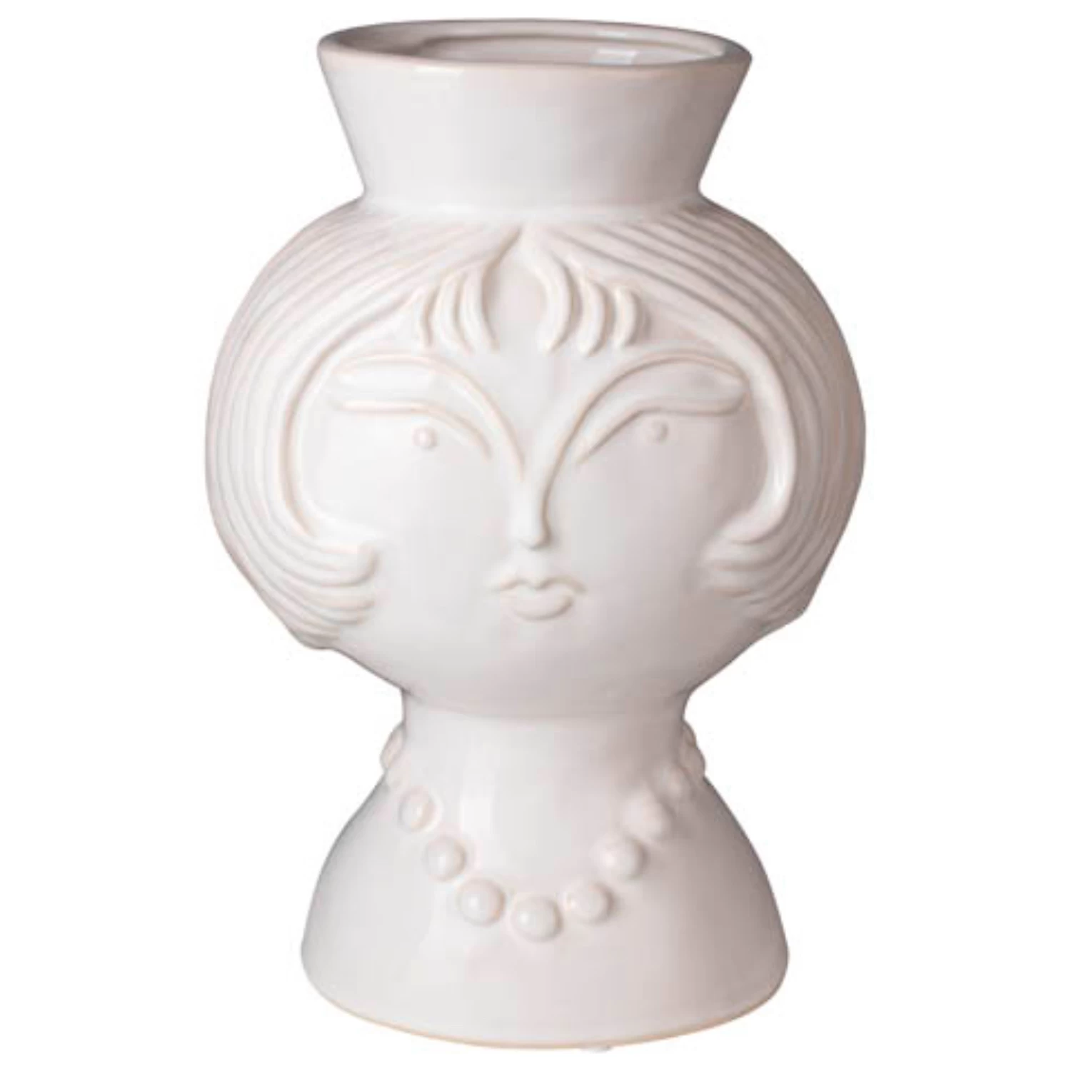 Als jij op zoek bent naar een eigenzinnige decoratie voor jouw interieur, bekijk dan deze prachtige Gusta vaas eens! Deze witte vaas heeft een bijzondere uitstraling door het vrouwelijke gezicht! Hij heeft een diameter van 16 cm en een formaat van 5×23,5 cm, en past geweldig in elke huisstijl!