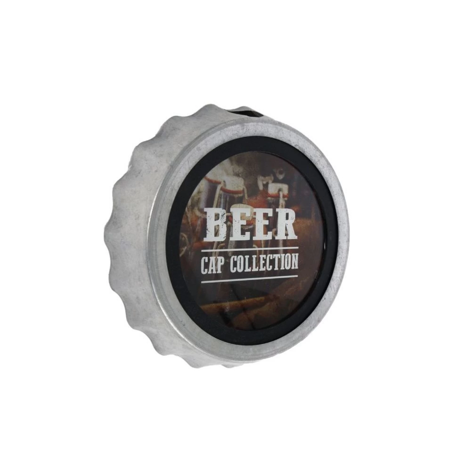 Verrijk jouw woning of tuin met deze metalen wandversiering! Deze grote kroonkurk is van echt metaal, en heeft de tekst ‘Beer Cap Collection’ met een sfeervolle afbeelding. Perfect voor de achtertuin, of misschien de Mancave! De wandversiering is 24x24x5 cm groot, en valt daardoor goed op!